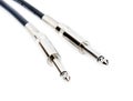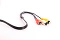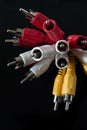 Image Description: Stereo RCA phono connectors in rubber body of black and red colors, close-up on white background