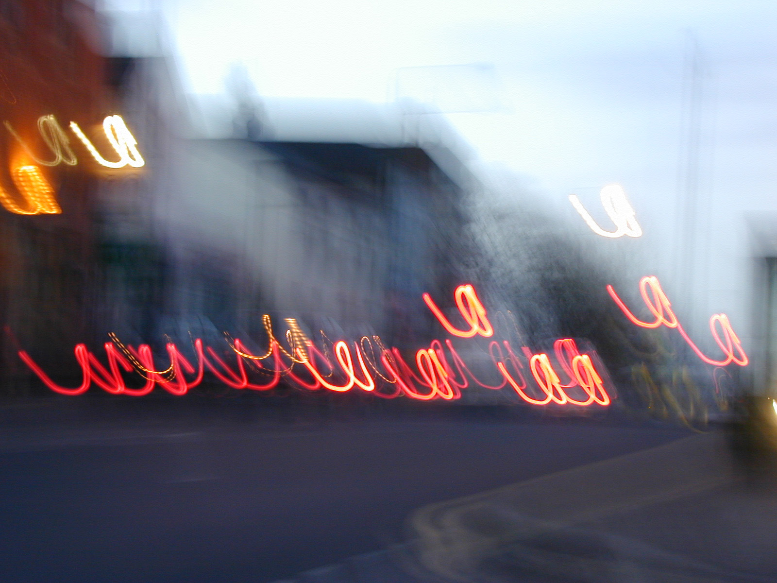 Image Description: Creative blurry image of car lights bouncing and forming loops down city street