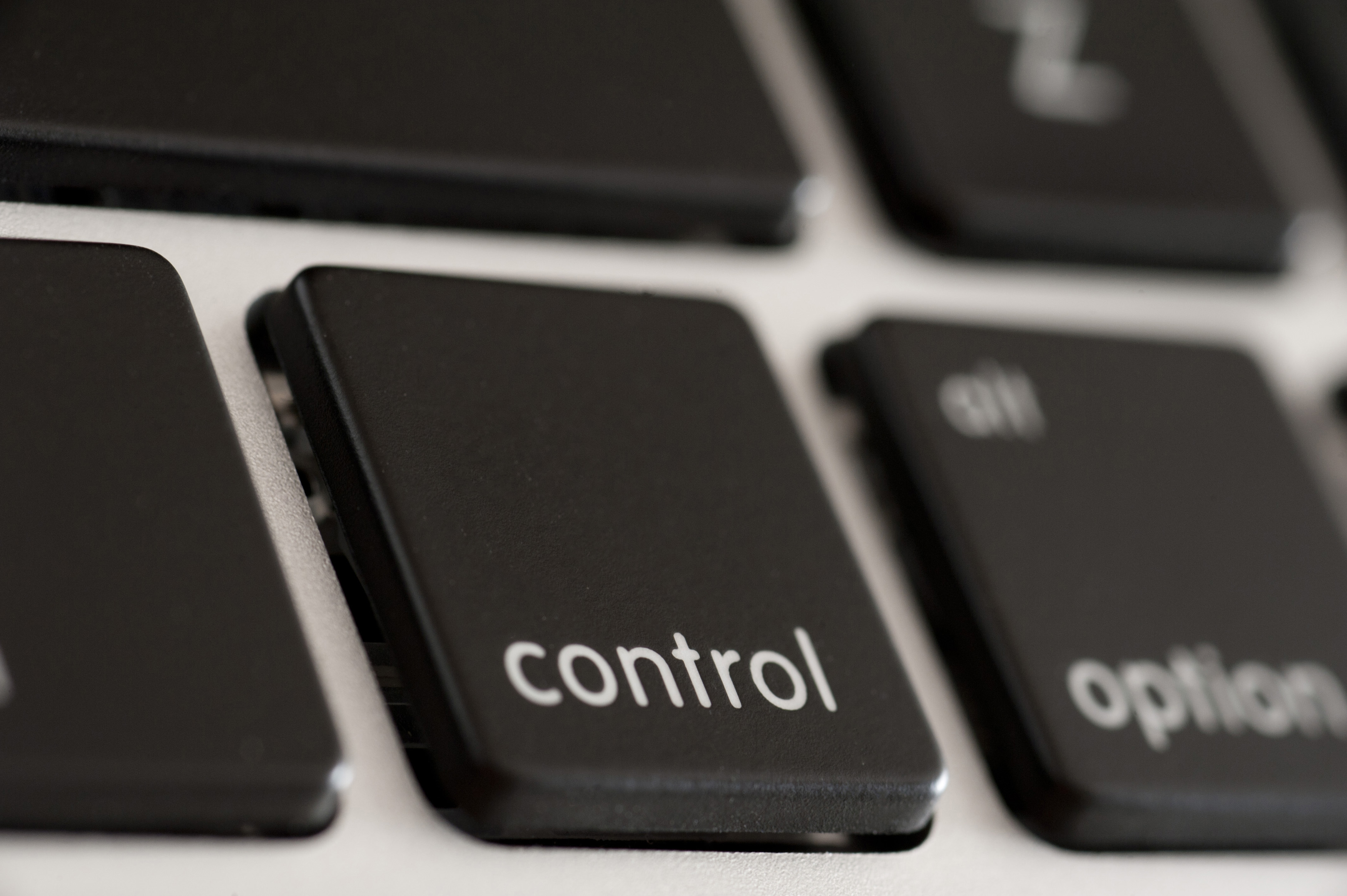 Image Description: Black computer control button or key on a keyboard viewed obliquely close up