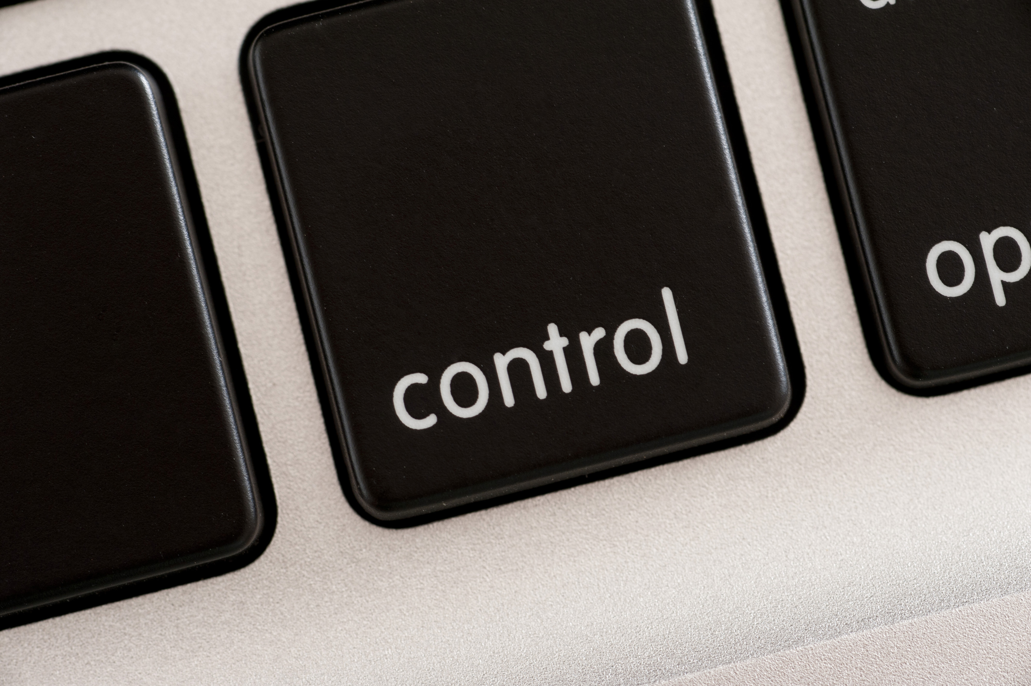 Image Description: Close up Conceptual Black Control Key on a White Computer