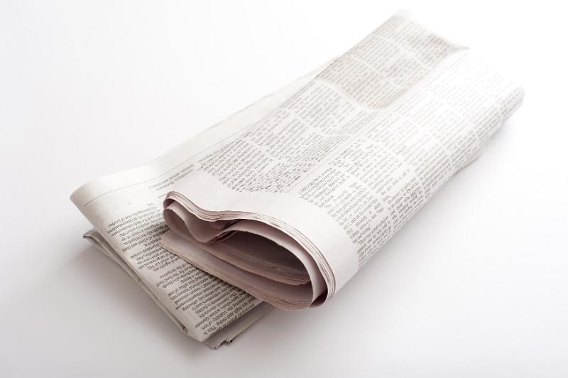 Image Description: Folded newspaper on a white background lying diagonally with copy space either side