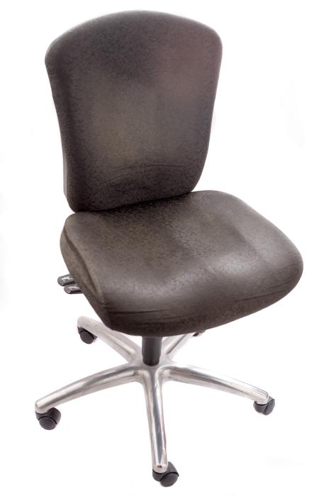 Image Description: Isolated single armless adjustable brown swivel chair with caster feet over white background