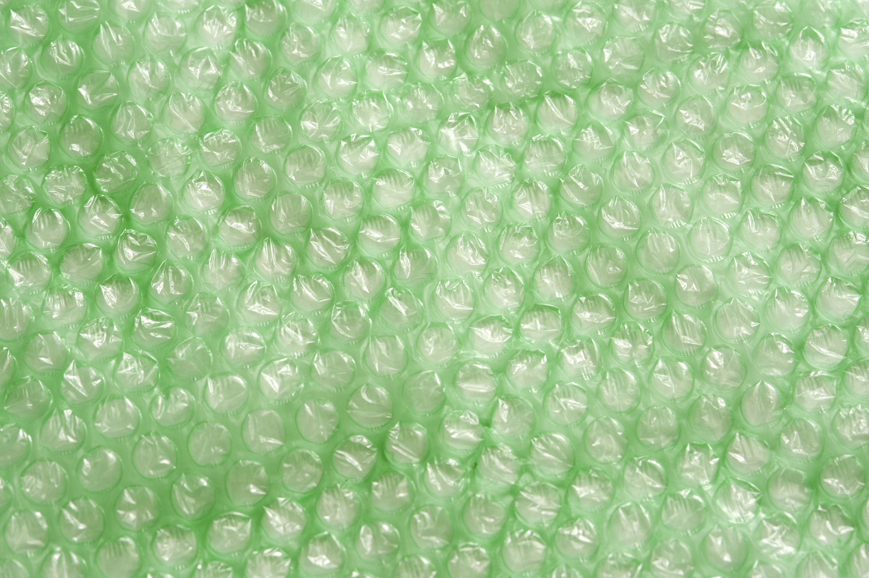 Image Description: Extreme close up background pattern of green plastic bubble wrap unraveled for full frame with copy space