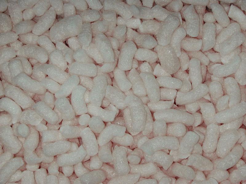 Image Description: Background texture of foam packaging material in the shape of small cylindrical tubes in a random pile in a full frame view
