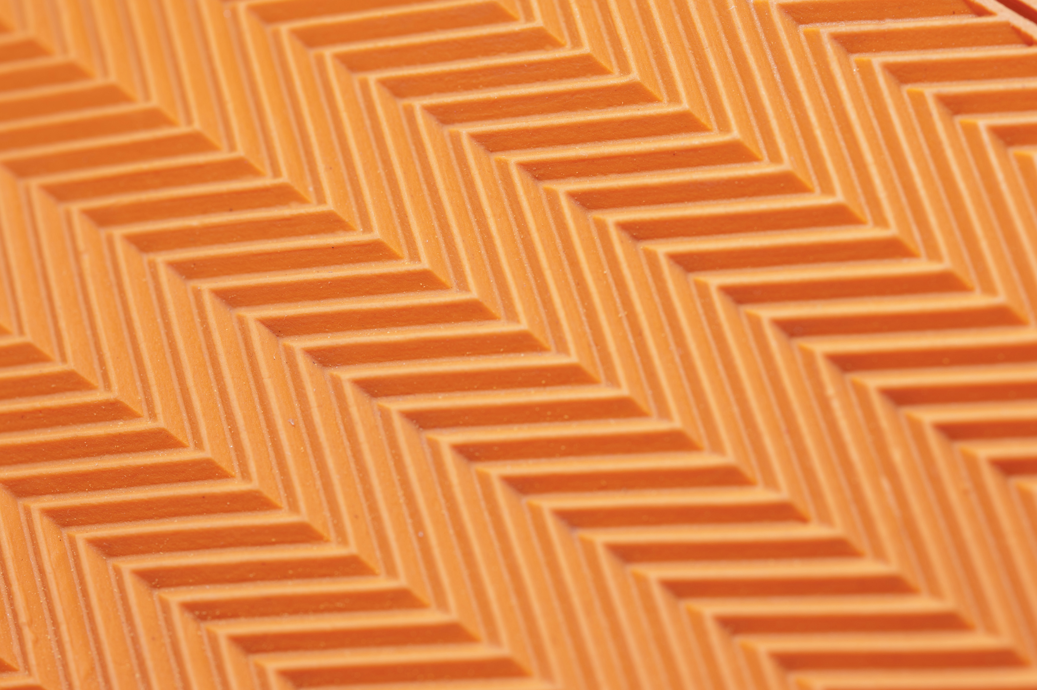 Image Description: Abstract background composed of a close up view orange tread marks arranged in slanted patterns