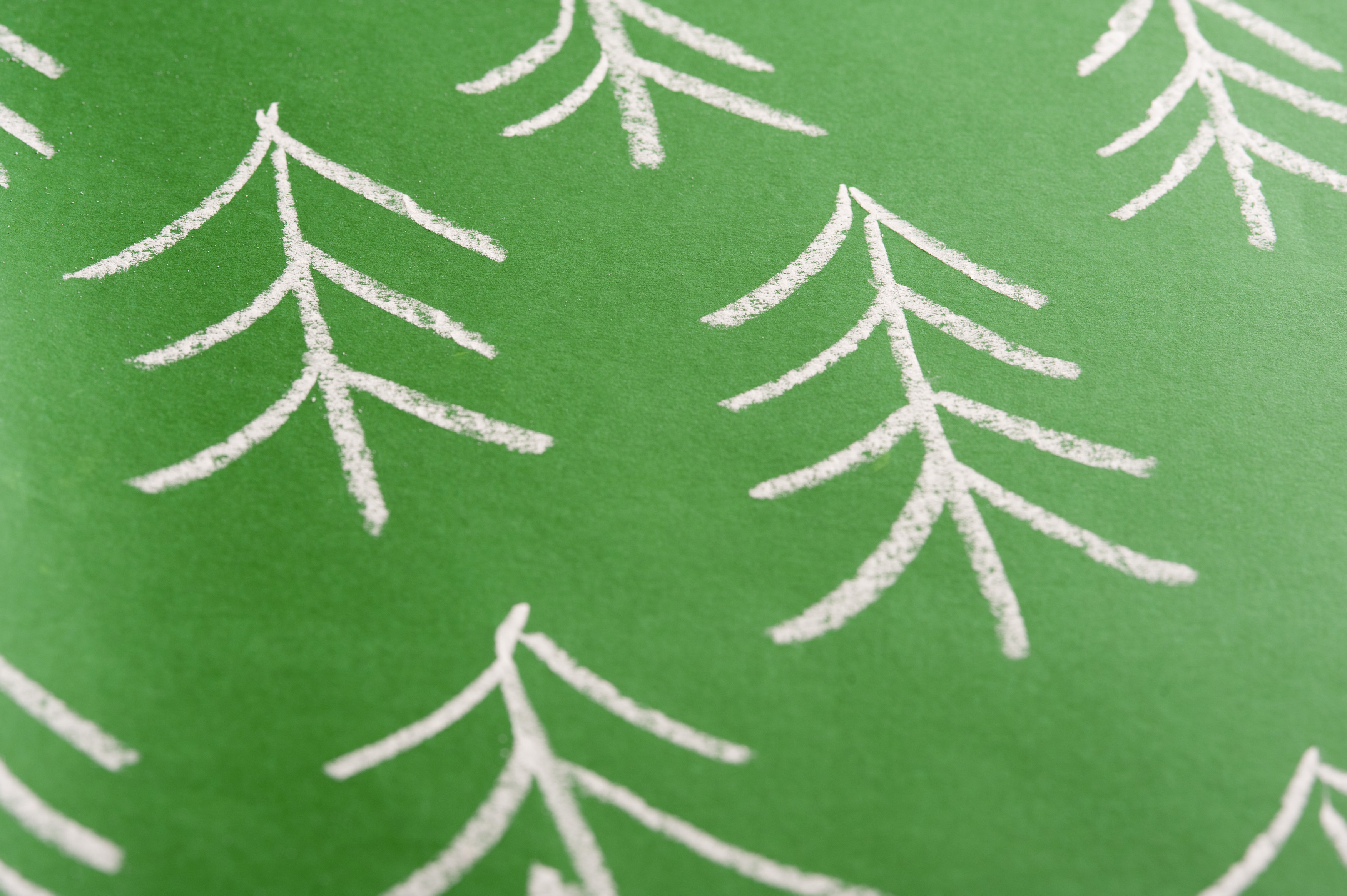 Image Description: Full Frame Background Image of Hand Drawn Evergreen Trees Drawn in Chalk on Green Background
