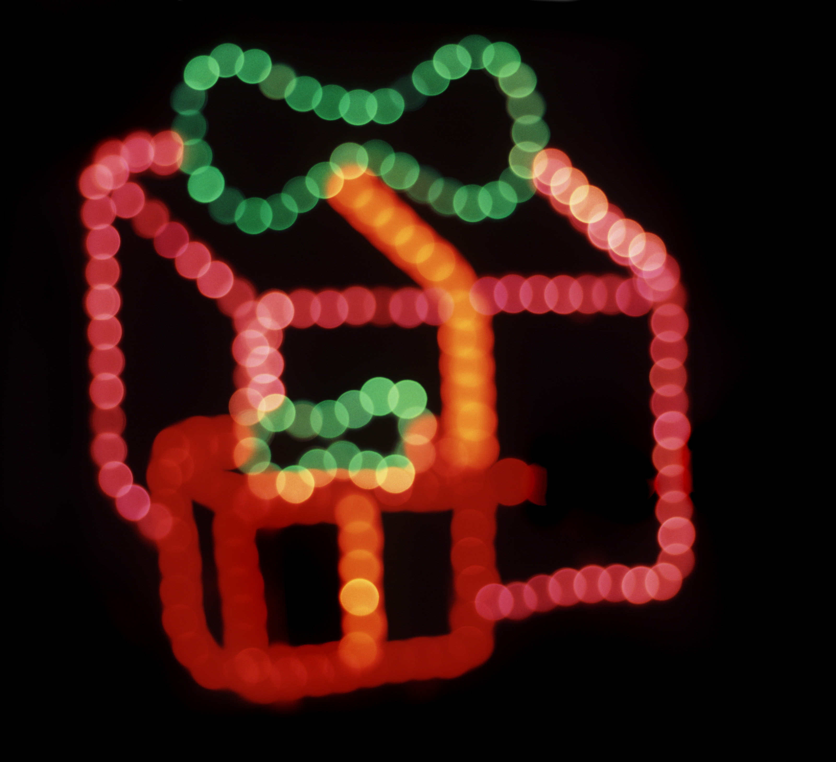Image Description: christmas lights in the shape of some colorful parcels with a ribbon bow