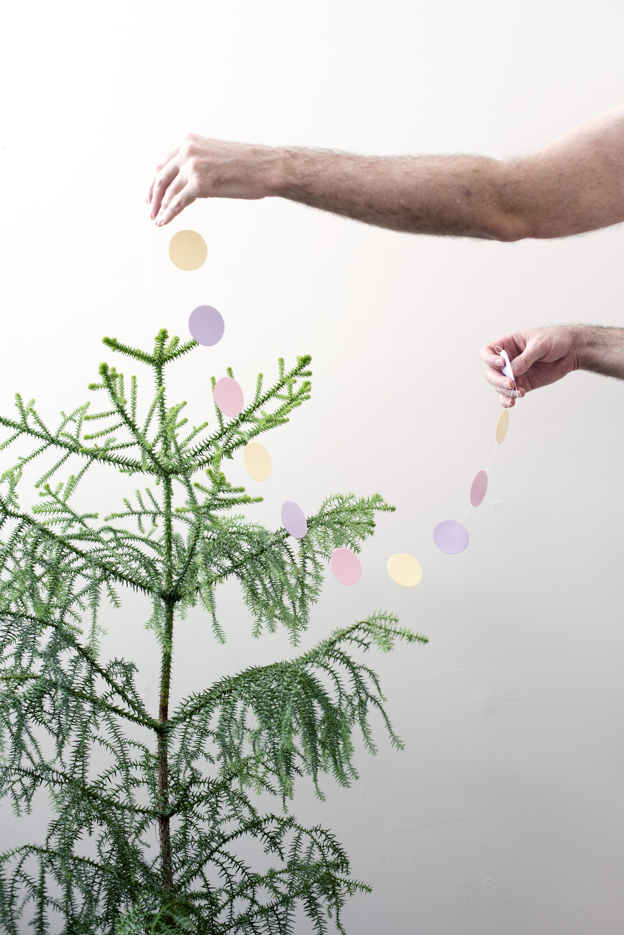 By Downloading/Using this image "man hanging paper streamer on a tree" you agree to the terms of use