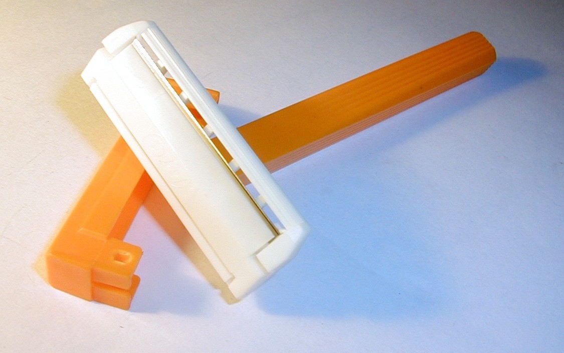 Image Description: a plastic disposable safety razor