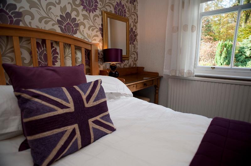 Image Description: Union Jack pillow on a bed in a patriotic British bed and breakfast accommodation