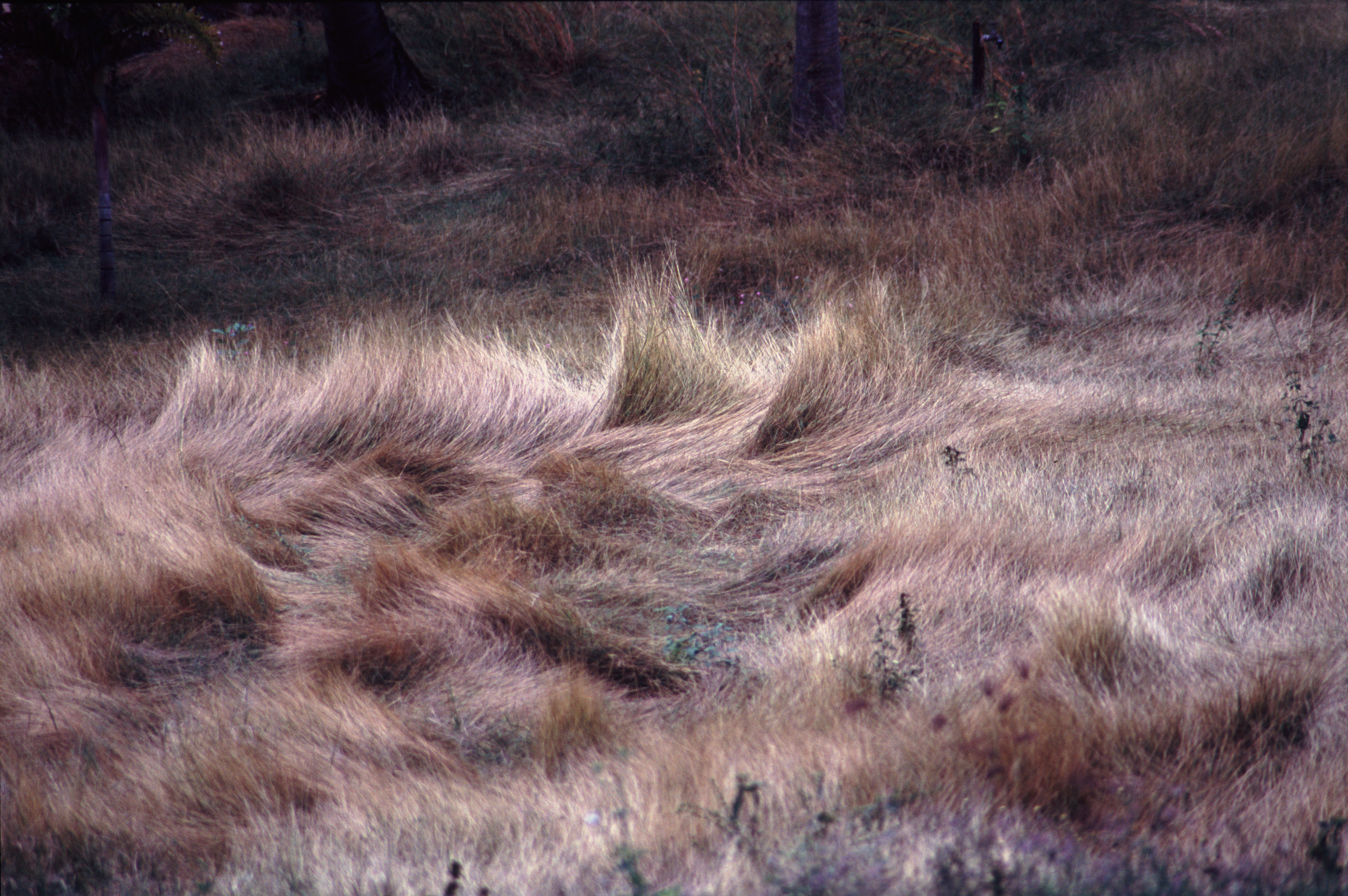 Image Description: High angle view of burnt wild grass wind swept at different angles