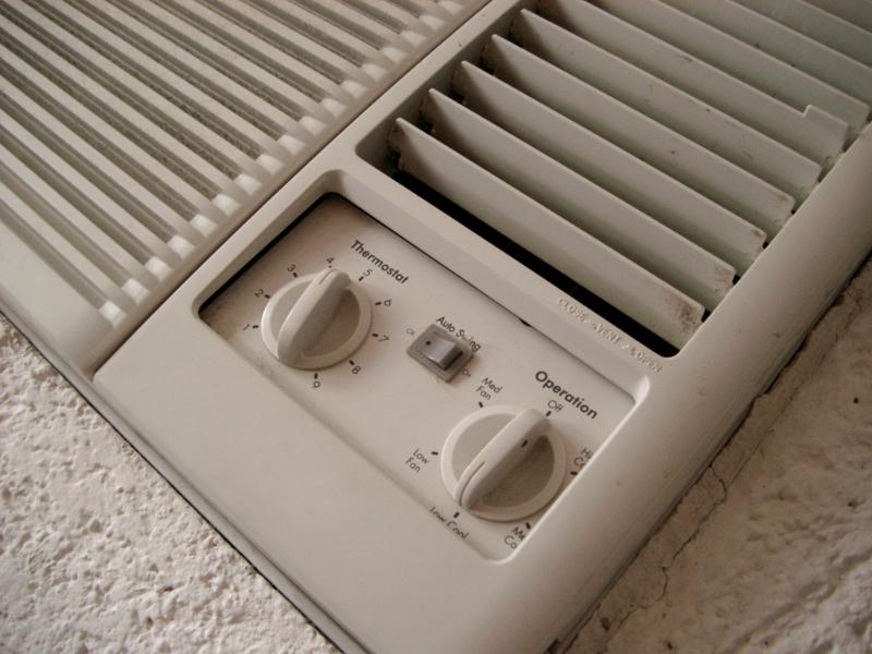 Image Description: Controls for a wall mounted electrical airconditioner or central heating unit to control ambient temperature inside the house