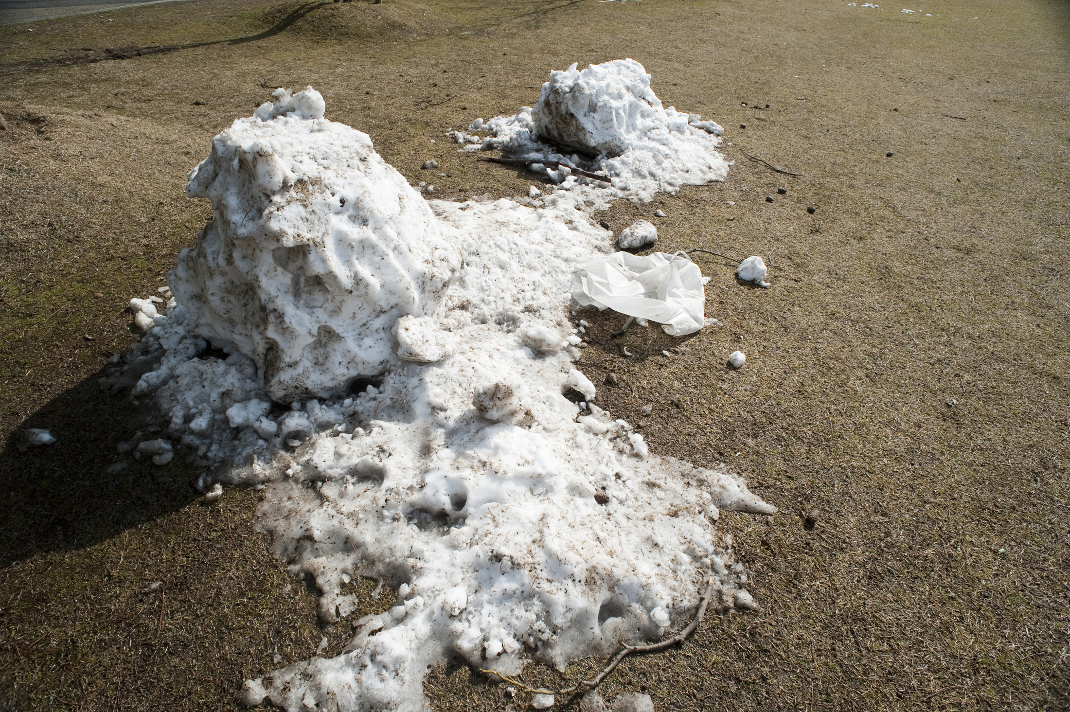 Image Description: Compacted dirty snow lying on the ground, an indication of changing weather patterns due to global warming and climate change