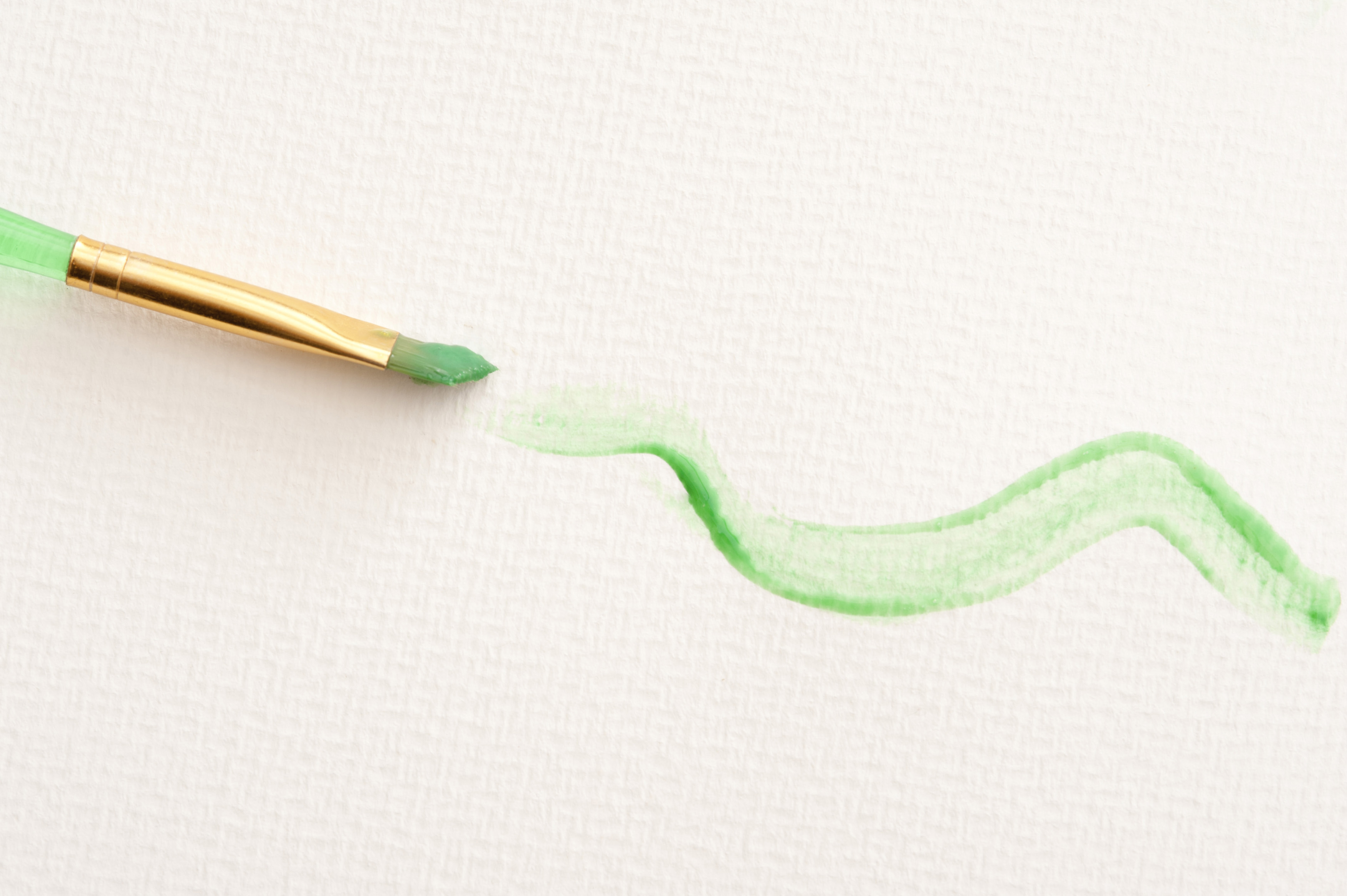 Image Description: Paint brush stroke in green squiggly line on textured paper canvas