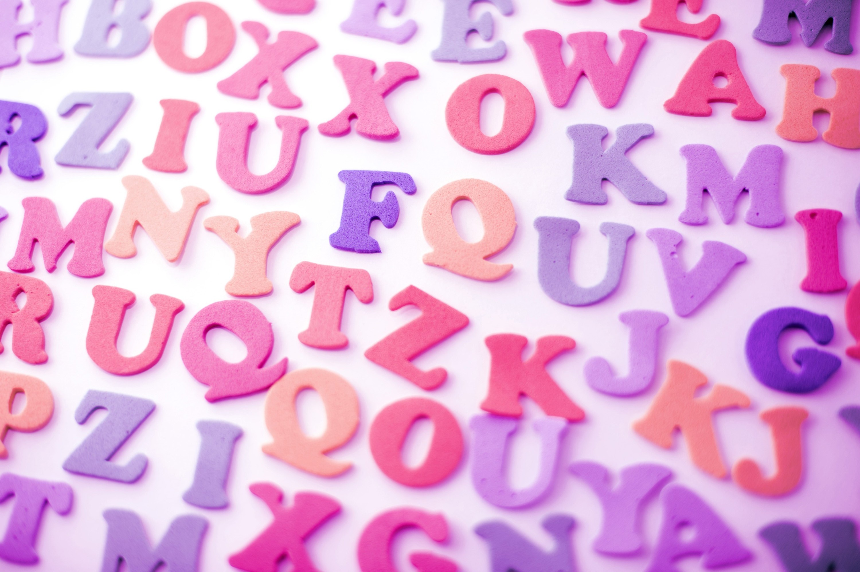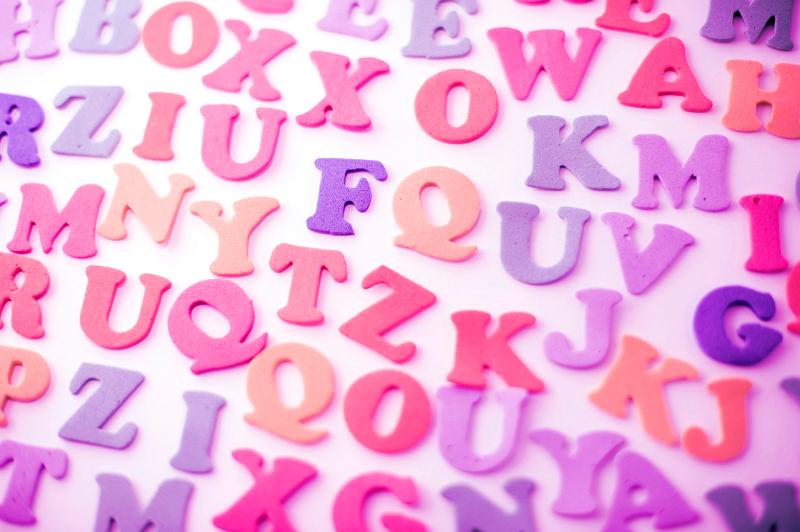 Image Description: Random pretty pink alphabet numbers in uppercase for teaching preschooler and kindergarten children their alphabet and to read and write