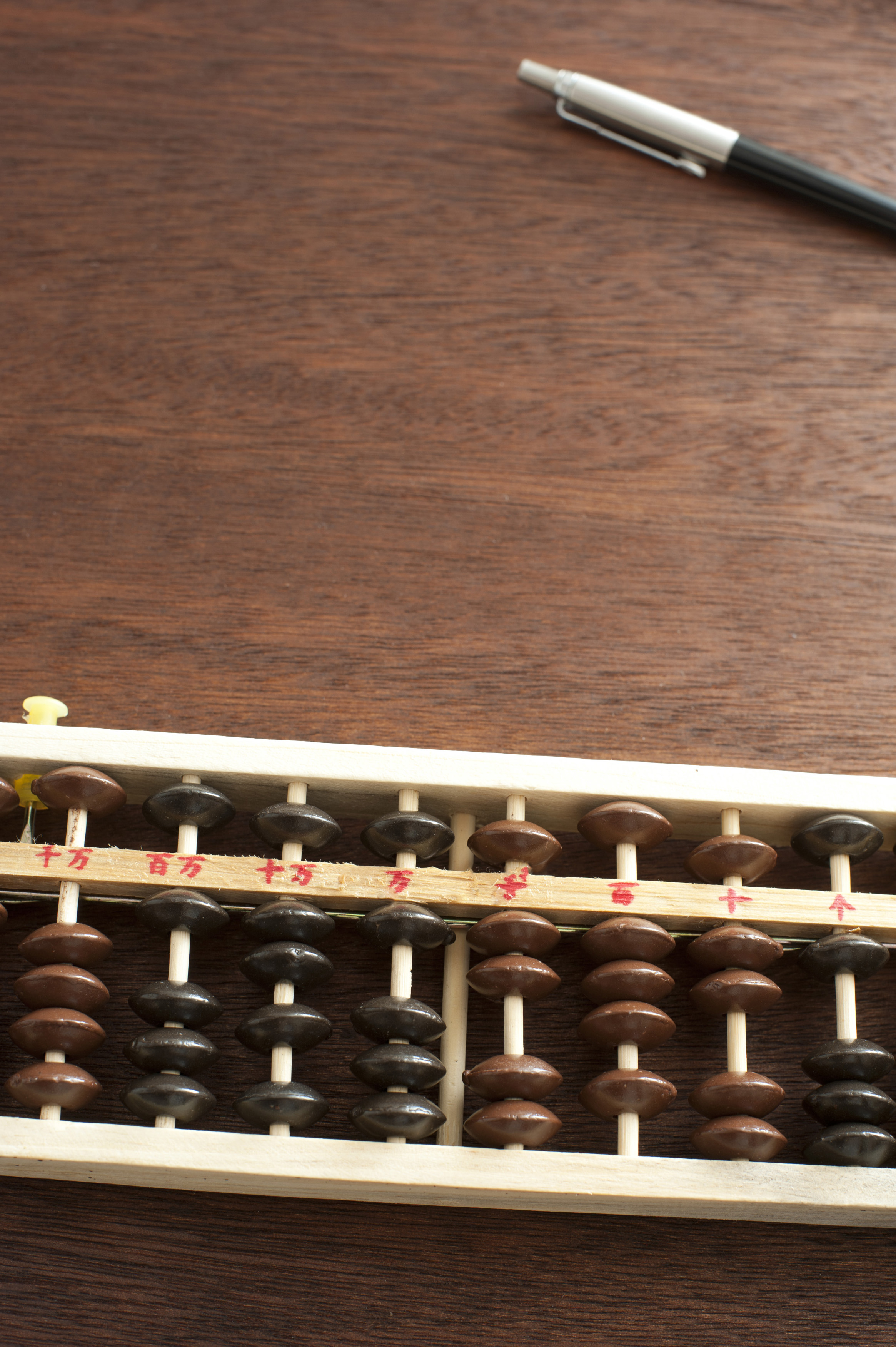 By Downloading/Using this image "Pen and wooden abacus lying on a desk" you agree to the terms of use
