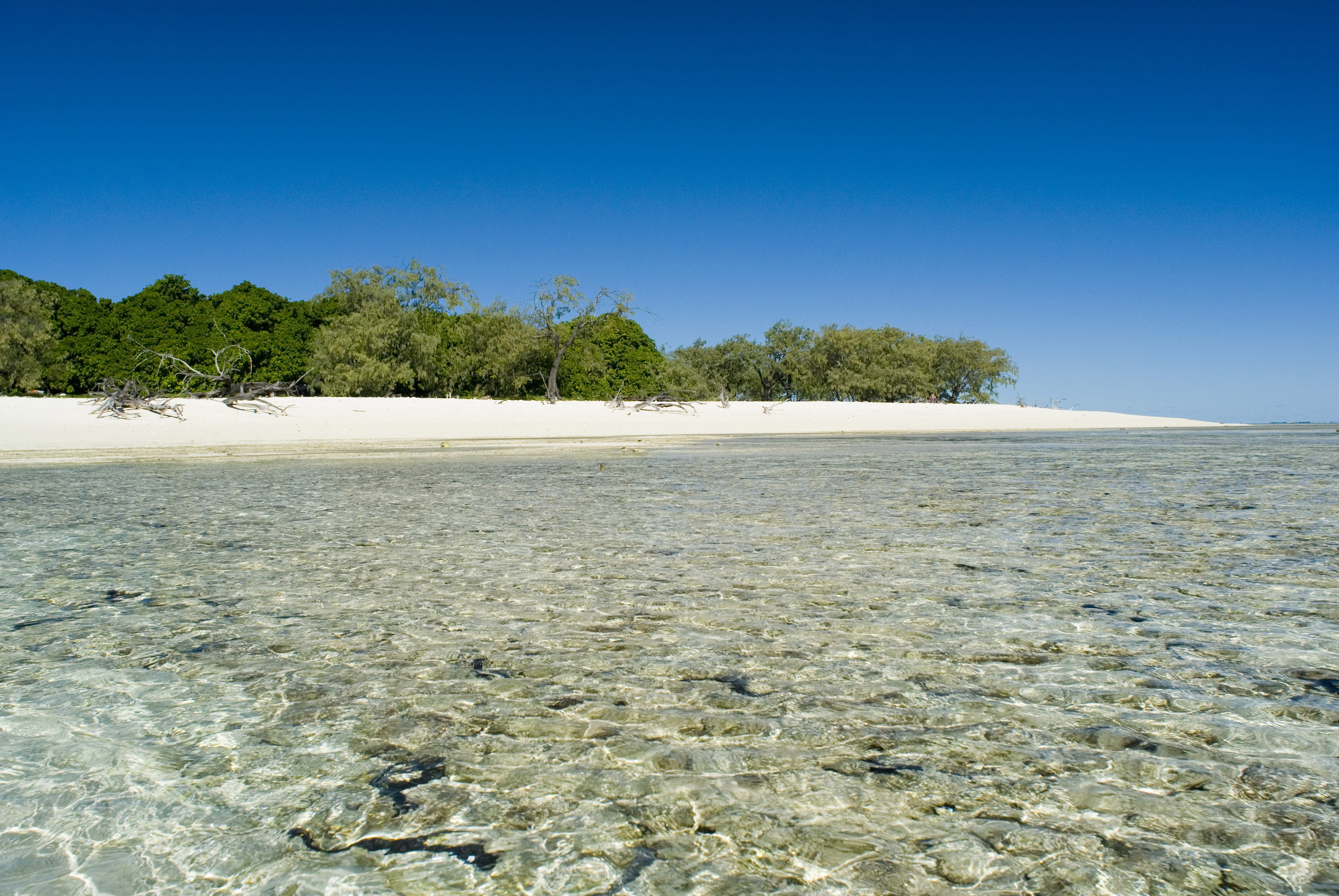 Image Description: A beautiful tropical beach, sea and blue sky at deserted Lady Musgrave Island, on the Great Barrier Reef, Australia.