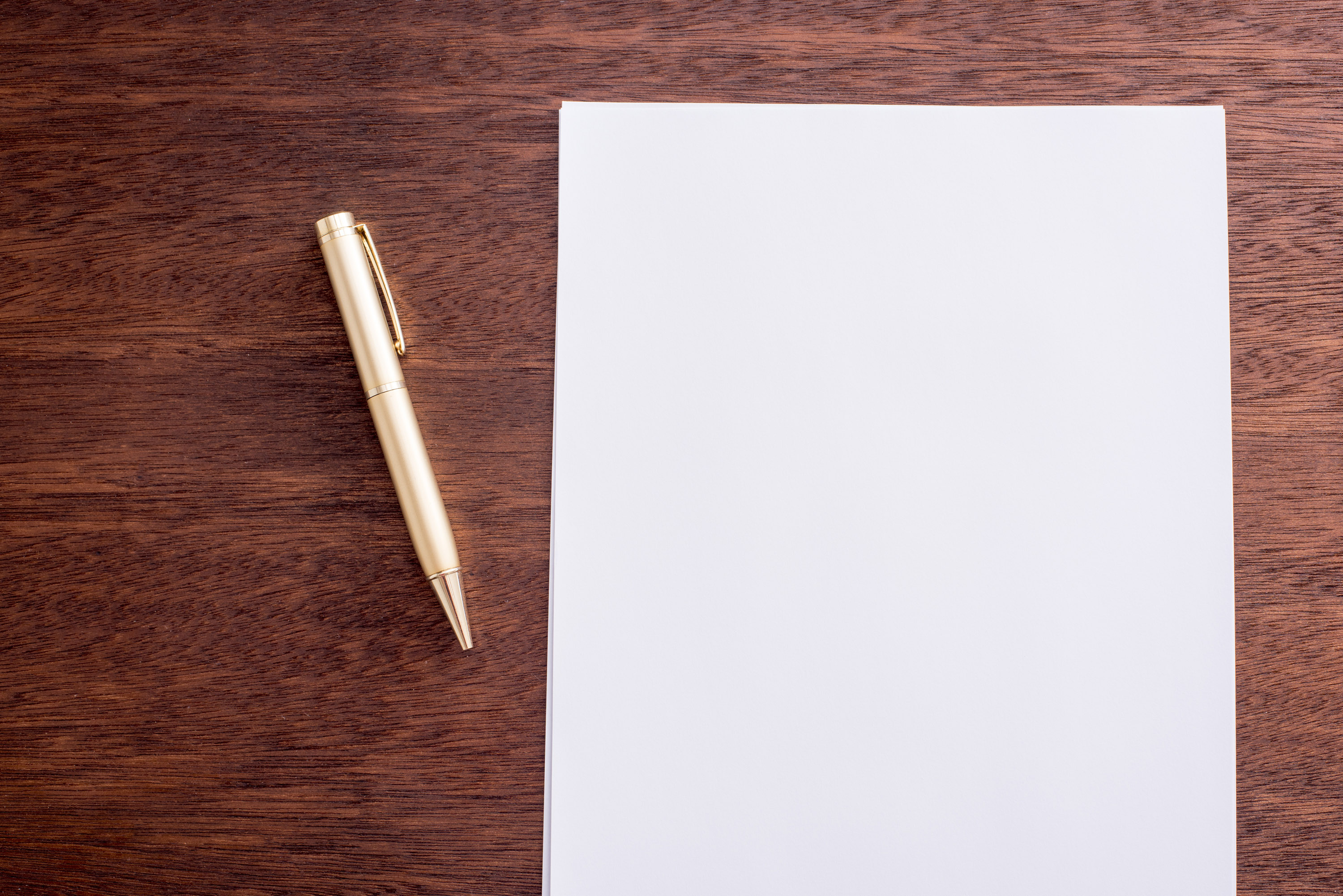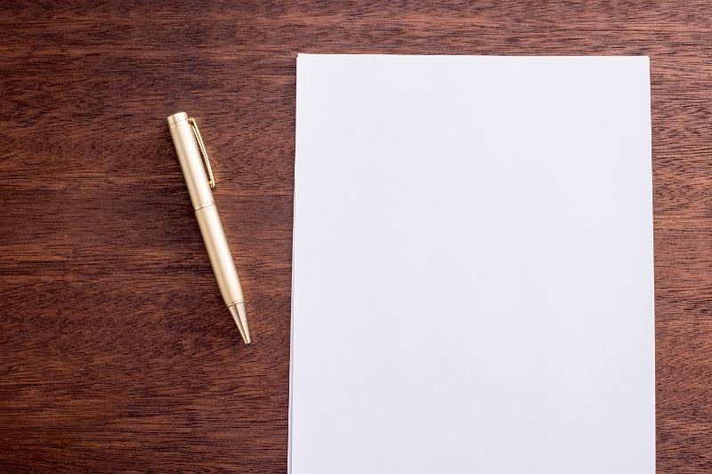 Image Description: Starting with a clean slate concept showing a blank empty page of white paper lying beside a pen on a desk