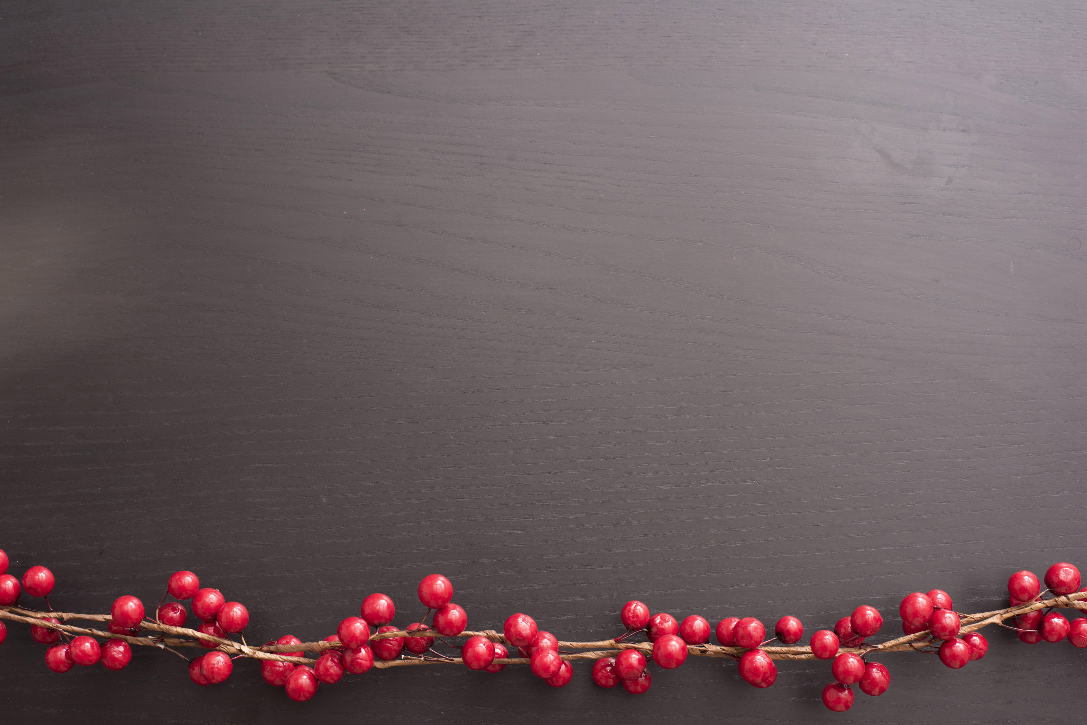 Image Description: Colourful red cranberry bottom border over a dark background with copy space