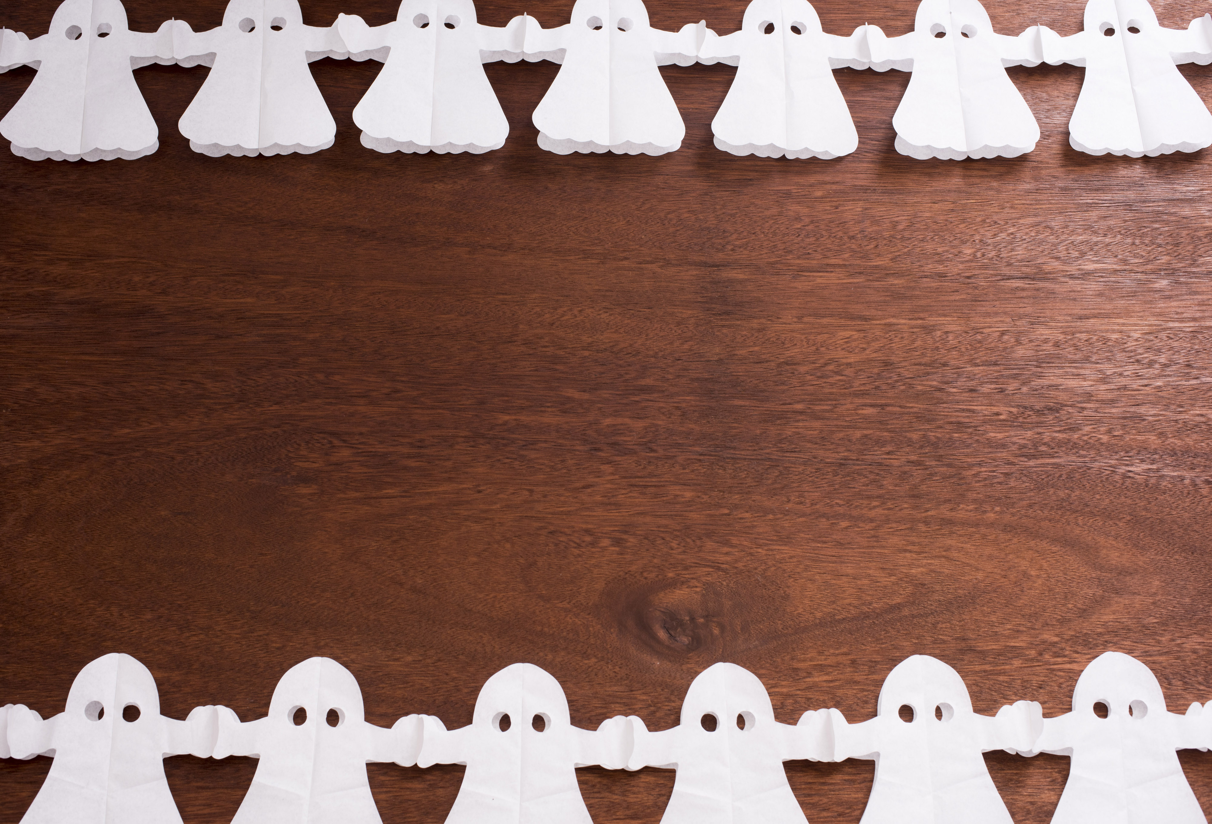 Image Description: paper chain halloween ghost decoration forming a border with space for text in the middle