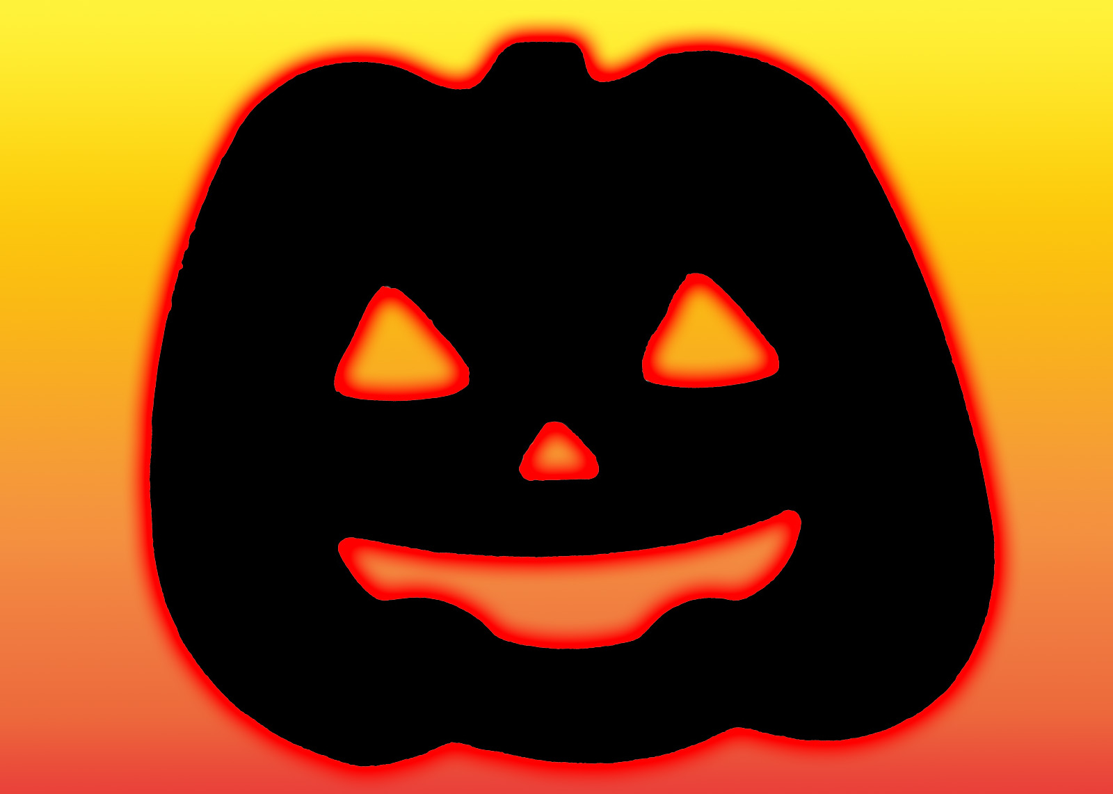 Image Description: black smiling pumpkin lantern shape with glowing orange edges
