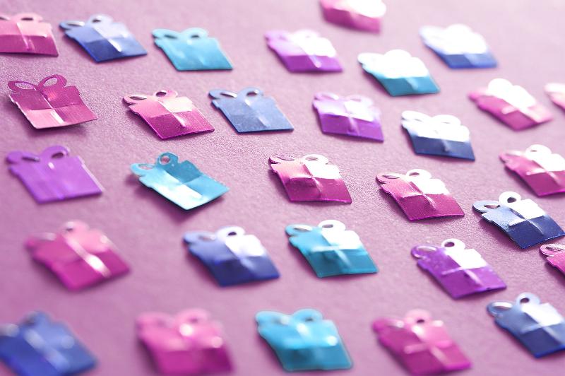 Image Description: an angled background of small metallic gift shapes suitable for depicting a birthday or celebration