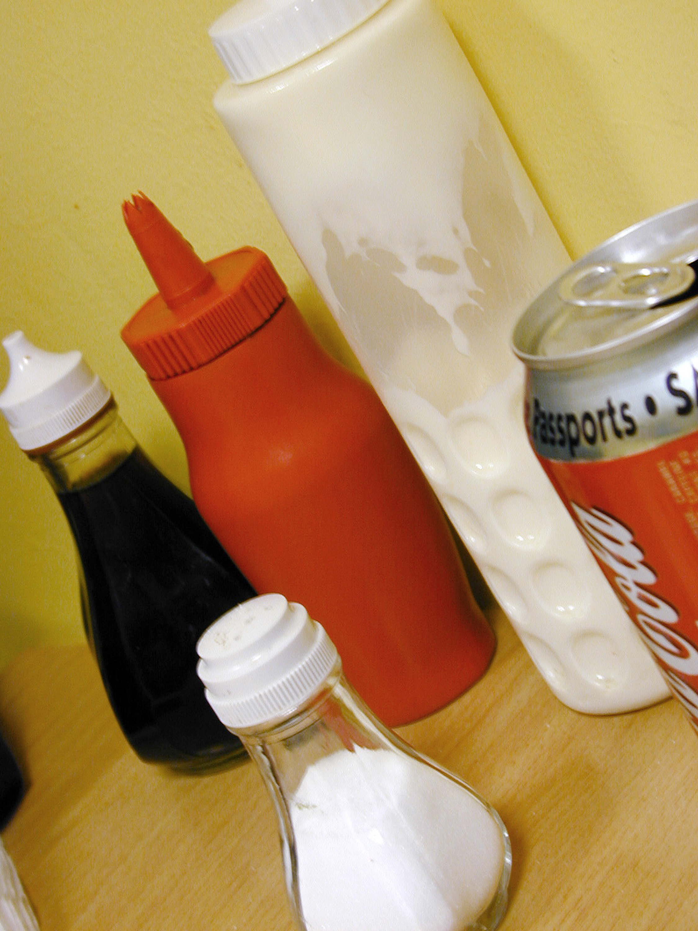 By Downloading/Using this image by freeimages.co.uk "Condiments and a soda can in a chip shop" you agree to the terms of usefreeimages.co.uk