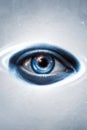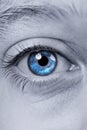 Image Description: Human eye looking straight with blue iris, concept of vision, visual perception or spirituality, close-up