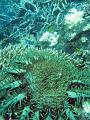Image Description: A yellow reef fish camouflage against a colourful coral background
