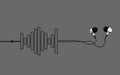 Image Description: a pair of personal stereo headphones and gold jack plug