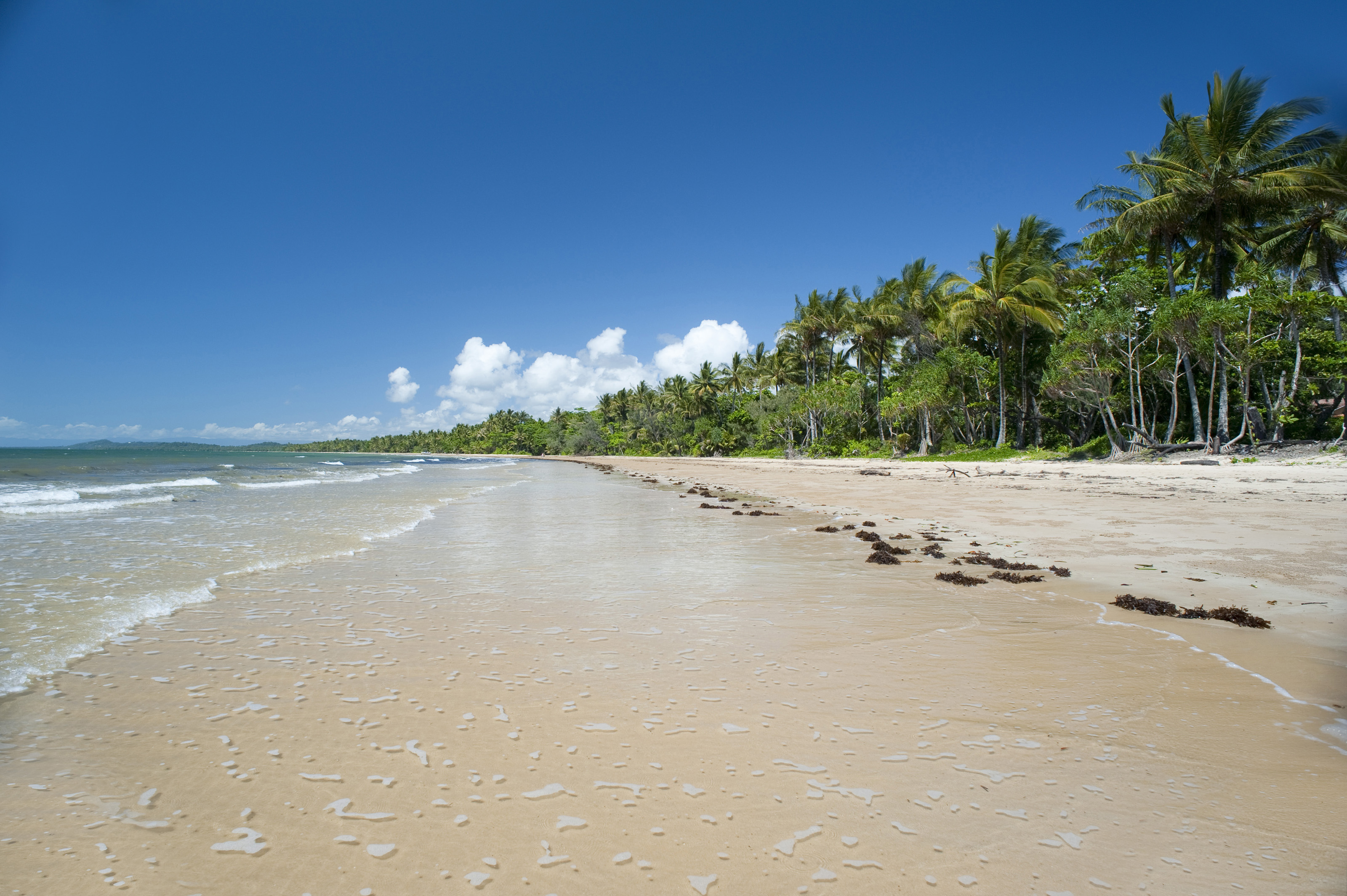 Image Description: a deserted tropical beach, warm crystal clear waters laps onto the golden sand