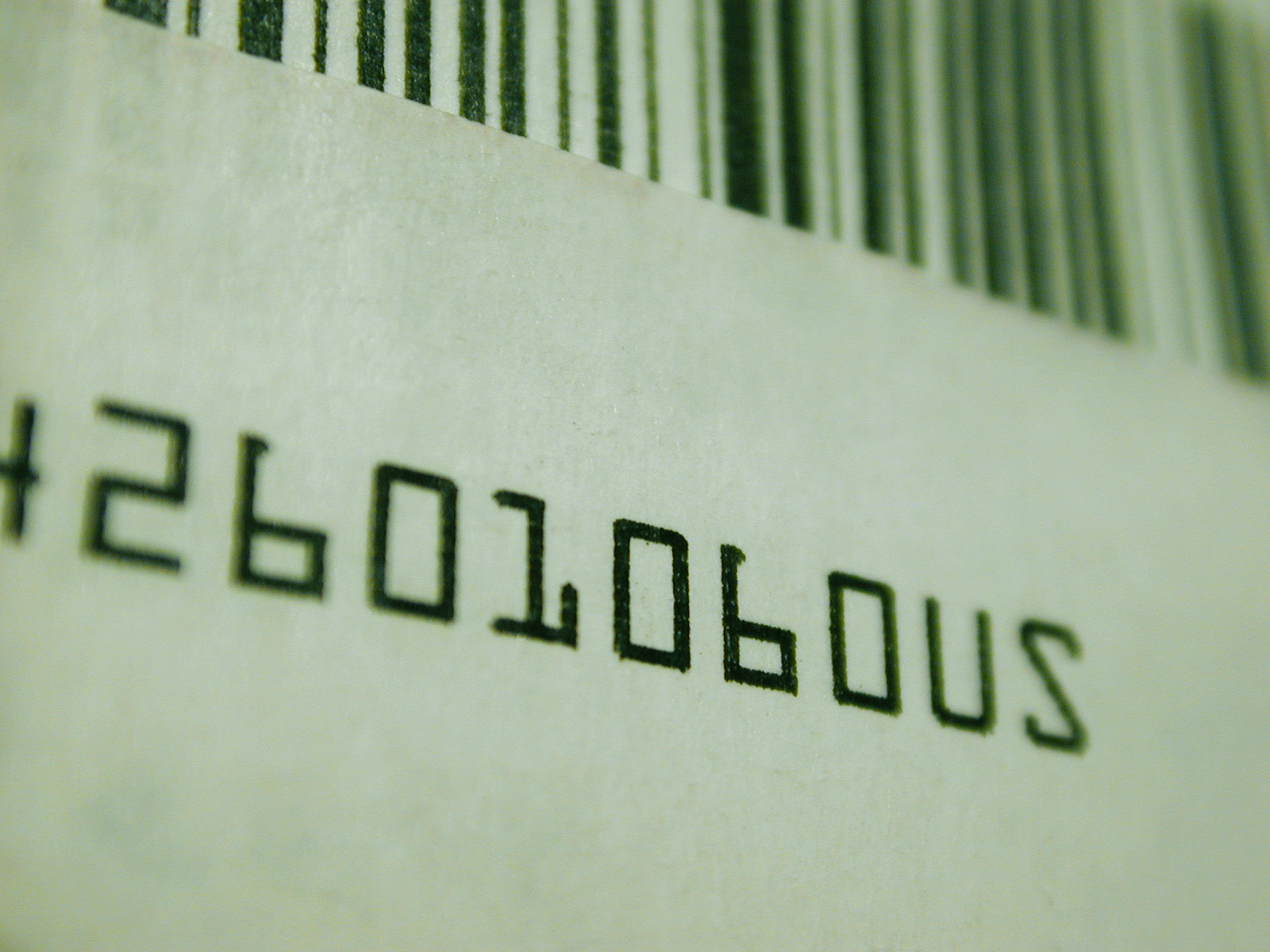 Image Description: computer readable OCR code and barcode above printed on green tinted background
