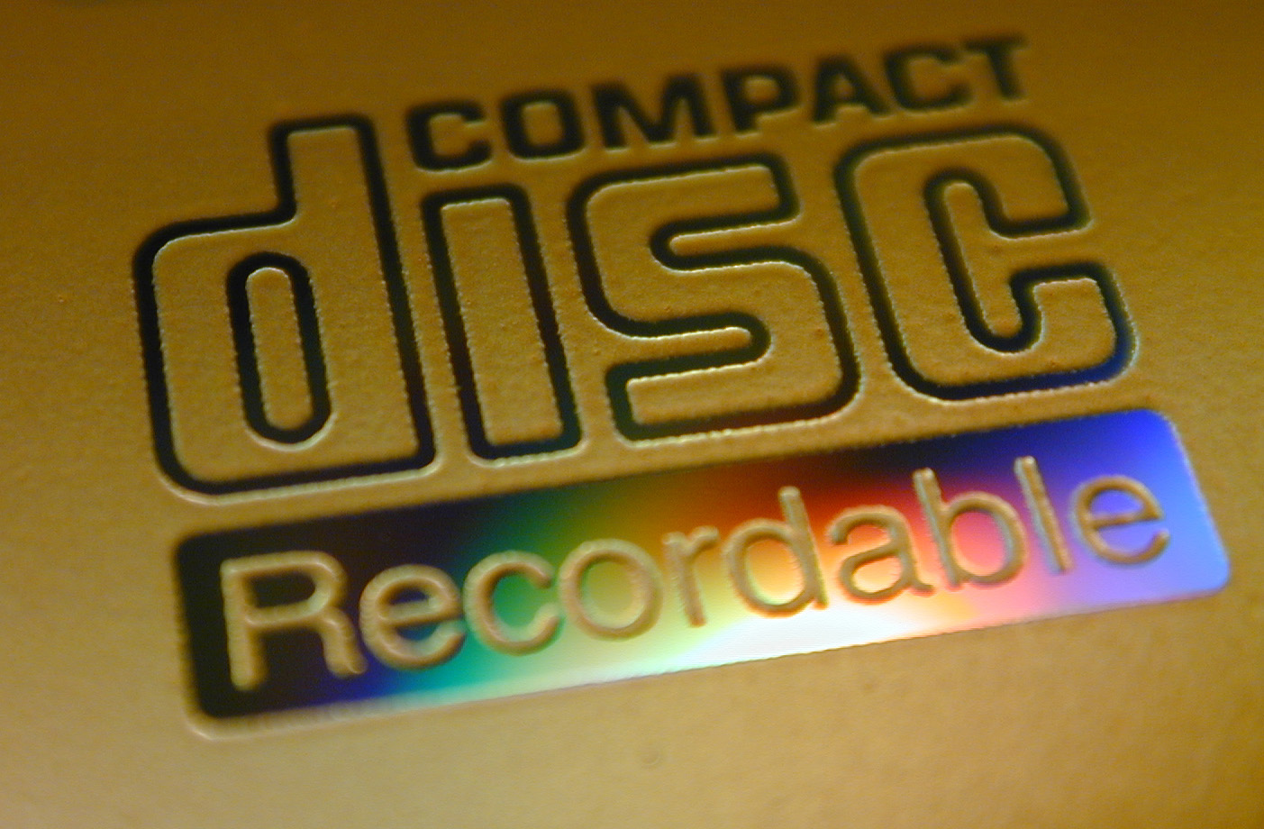 Image Description: Recordable compact disc lable close-up on yellow CD surface