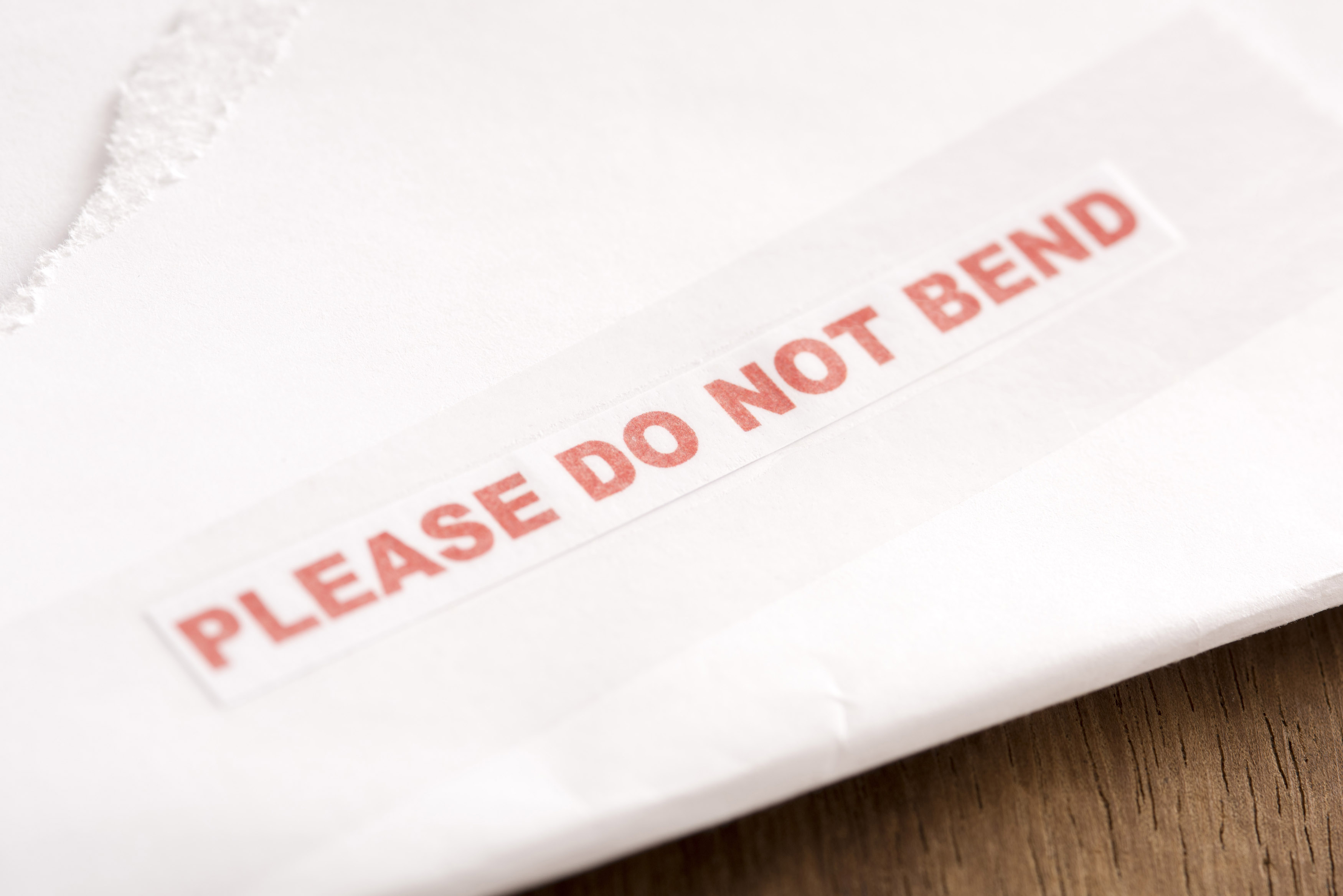 Image Description: Please Do Not Bend postal label on a letter warning of fragile or important contents or documents
