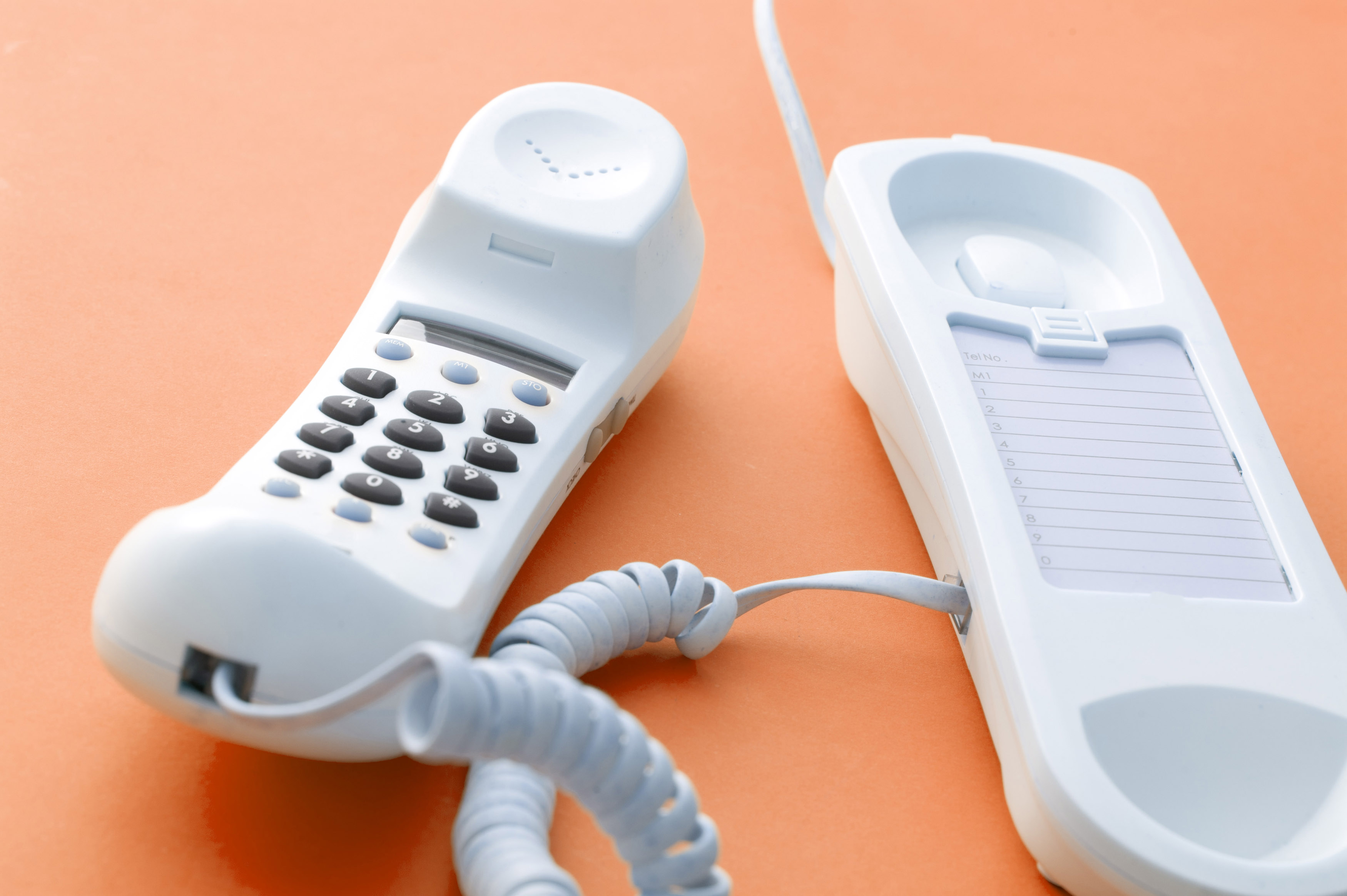 Image Description: Telephone receiver left off the hook for privacy or because the recipient of the call is busy with something else over an orange background